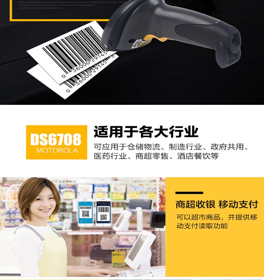 斑馬Zebra DS6708手持式二維條碼掃描器參數