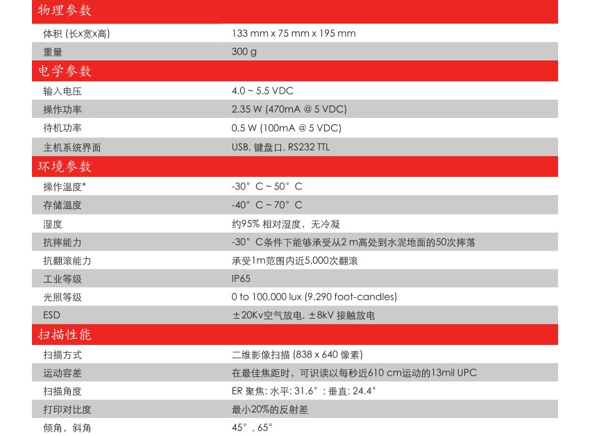 Honeywell霍尼韋爾 1910I工業級二維手持掃描器/產品參數