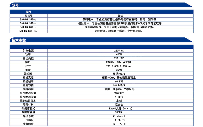 EJOHON SRT-v 視覺防重(視覺版本,專業(yè)檢測標(biāo)簽是否存在印刷質(zhì)量問題和OCR光學(xué)字符讀取等)