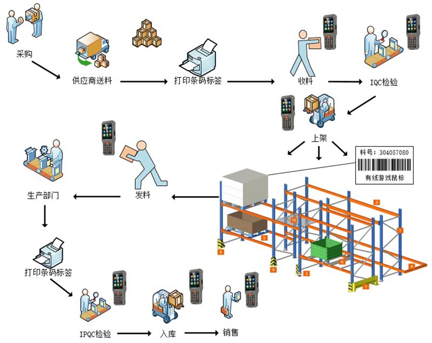 4、本系統串聯條碼、移動設備、電子看板、ERP,打造從采購、領料、生產、倉儲到發貨及售后等智能化廠內全作業環節。
