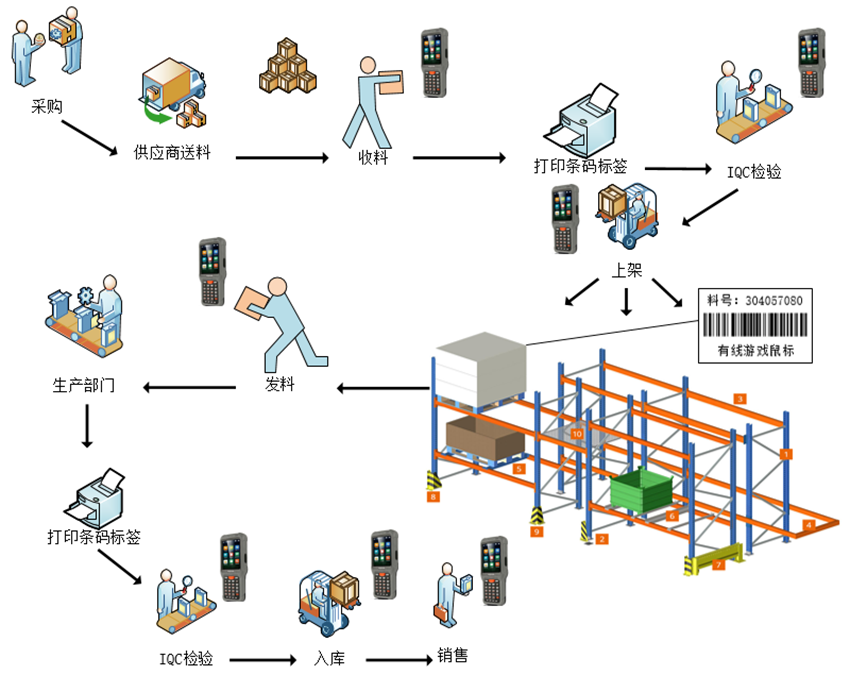 4、本系統串聯條碼、移動設備、電子看板、ERP,打造從采購、領料、生產、倉儲到發貨及售后等智能化廠內全作業環節。