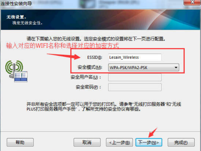 6、輸入對應的 WIFI 名稱和對應無線網絡的加密方式,點擊下一步;