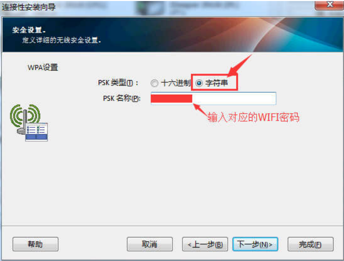 7、選擇字符串,輸入對應的 WIFI 密碼,點擊下一步;