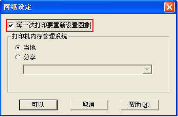 d. 點擊“網絡設定”按鈕,勾選“每打印一次要重新設置圖像”單選框