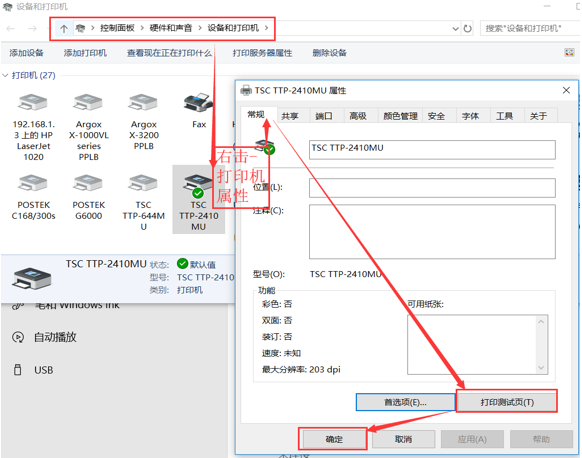 1.7 右擊打印機屬性-點常規選項,再點擊打印測試頁,