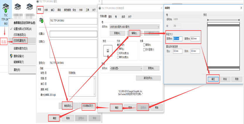 1.8右擊打印機屬性-點常規選項-編輯-按標簽實際大小設置,