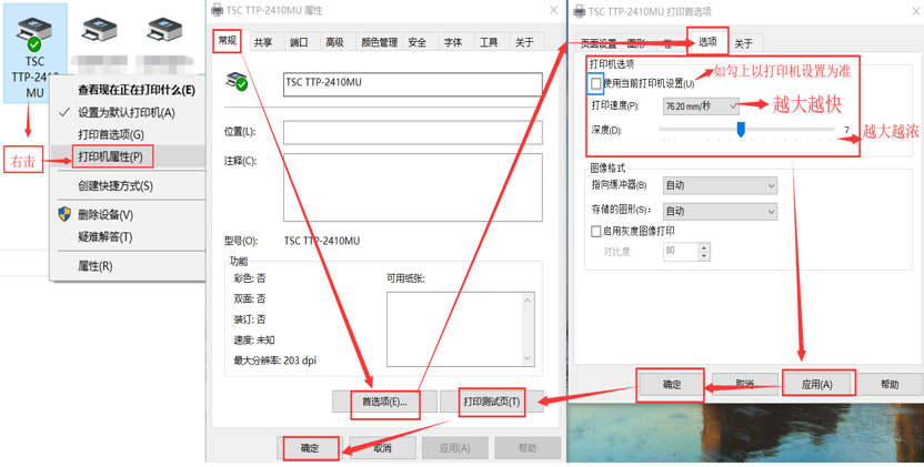 1.9右擊打印機屬性-點常規選項-選項-進行打印速度及深度設置