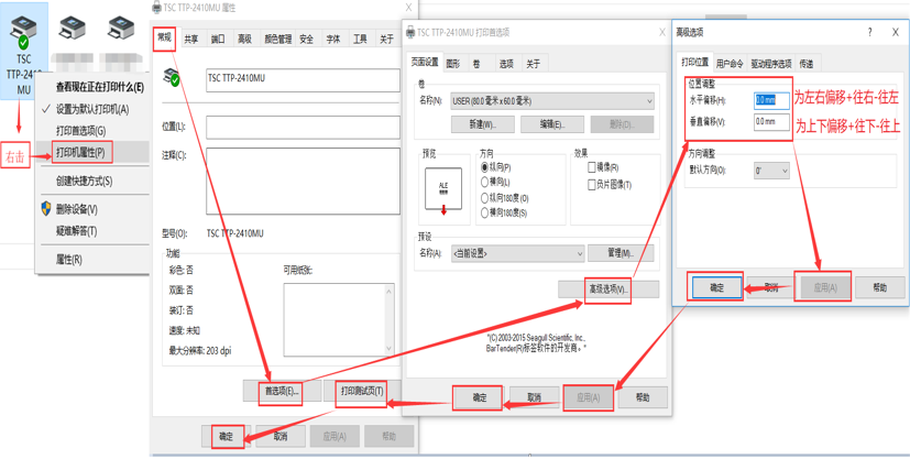 1.10右擊打印機屬性-點常規選項-頁面設置-高級選項-水平及垂直
