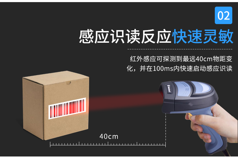 紅外感應可探測到*遠40cm的物距變化,并在100ms內快速啟動感應識讀